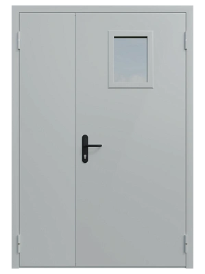 Двупольная техническая универсальная дверь с окном и антипаникой