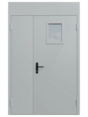 Двупольная техническая универсальная дверь с окном и фрамугой