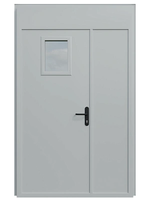 Двупольная техническая универсальная дверь с окном и фрамугой — это многофункциональное решение, предназначенное для оформления высоких и широких проемов, где требуется одновременно обеспечить визуальный контроль и естественное освещение. Эта модель идеально подходит для больших коридоров, производственных цехов, общественных зданий или административных помещений с высокими потолками, обеспечивая максимальный комфорт и функциональность.