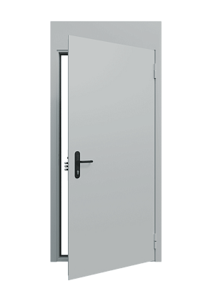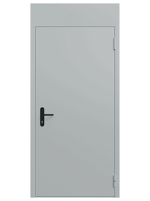 Однопольная техническая универсальная дверь с фрамугой — это эффективное решение для установки в нестандартно высокие проемы. Конструкция включает верхнюю неподвижную часть (фрамугу), которая позволяет закрыть проем целиком, сохранив при этом стандартную и удобную для эксплуатации высоту самой створки. Такая модель идеально подходит для промышленных объектов, складов и технических помещений с высокими потолками.