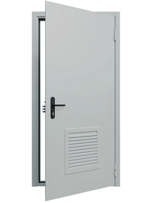 Однопольная техническая универсальная дверь с решеткой — это специализированное решение, предназначенное для помещений, где необходима постоянная естественная вентиляция. Встроенная жалюзийная решетка (ЖВР) обеспечивает свободную циркуляцию воздуха, что делает эту модель незаменимой для котельных, серверных, электрощитовых и складских зон с особыми требованиями к микроклимату.