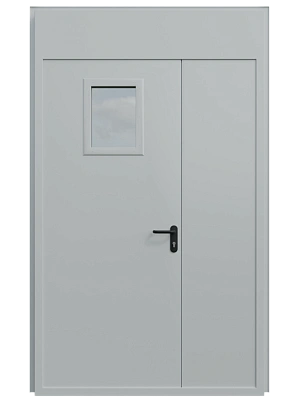 Двупольная техническая дверь 2000x3050 с окном 600x800 и фрамугой 1000, нерж. сталь 1.5
