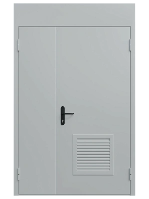 Двупольная техническая универсальная дверь с решеткой и фрамугой