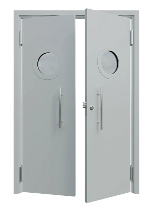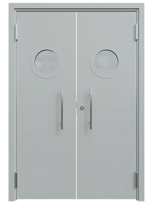 Двупольная маятниковая дверь 1200x2050 с окном 300x400, металл 1.2
