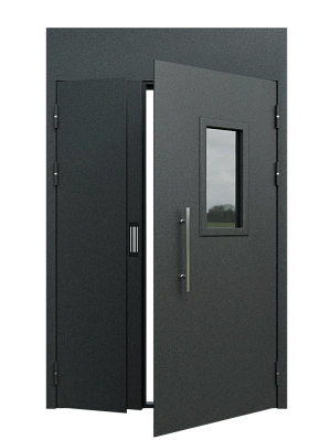 Двупольная подъездная дверь с окном