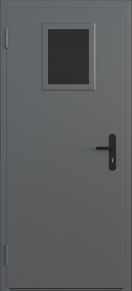 Однопольная противопожарная дверь ei 60 металл 1.2 мм с окном 300х400 мм и фрамугой 450 мм