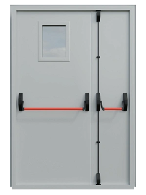 Двупольная техническая дверь с окном и системой «Антипаника» представляет собой надежное и функциональное решение для помещений с повышенными требованиями к безопасности и освещённости.