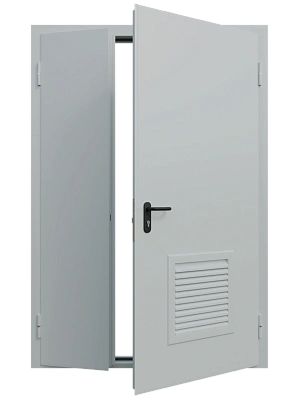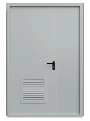 Двупольная техническая дверь с решеткой — это практичное решение для помещений, где требуется надёжная защита и вентиляция за счёт встроенной решетки.